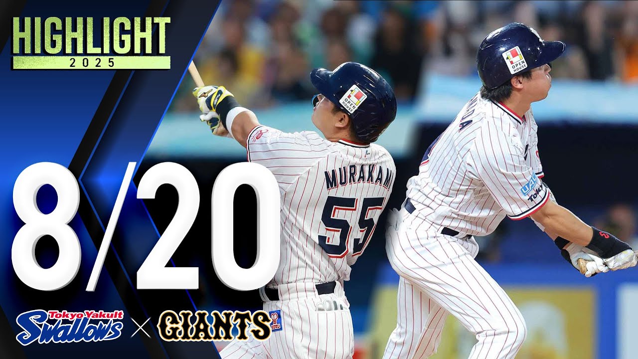 【スワローズ活躍シーン】村上宗隆選手、特大の先制8号ソロ&山田哲人選手、勝ち越し2ラン! 8月20日 東京ヤクルトスワローズvs読売ジャイアンツ(神宮球場)