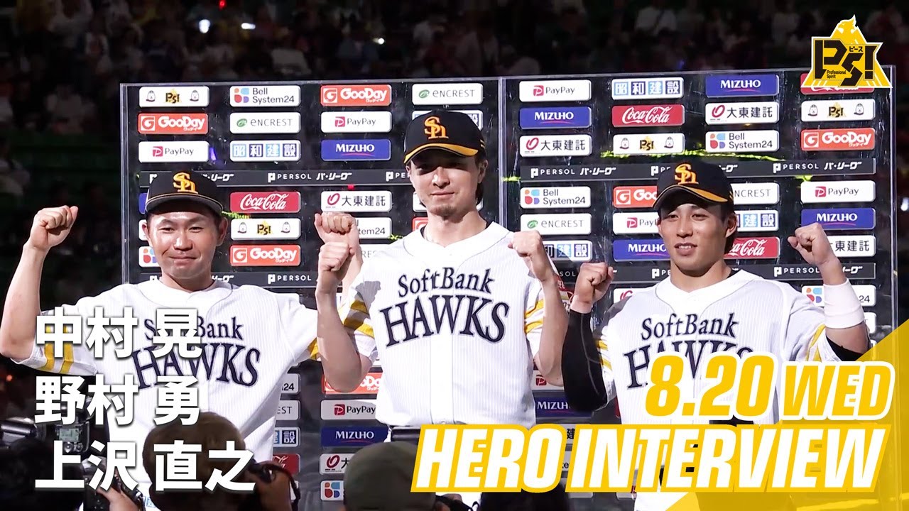 8月20日(水)vs埼玉西武 #中村晃 選手 #上沢直之 投手 #野村勇 選手のヒーローインタビューです。