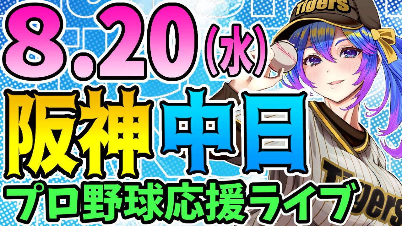 【阪神応援実況】8/20(水)阪神タイガースVS中日ドラゴンズのプロ野球同時視聴ライブ!阪神ファン、中日ファン歓迎!!!【プロ野球速報/プロ野球ライブ/女性Vtuber