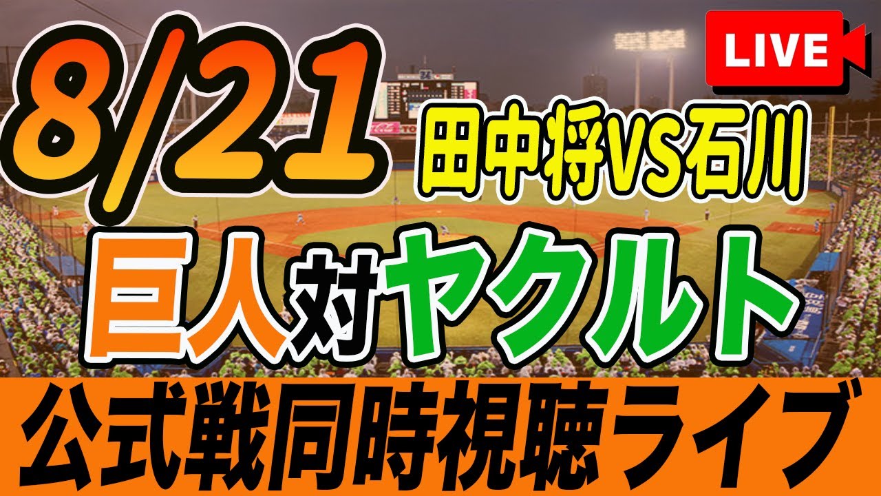 【巨人/同時視聴】8/21巨人対ヤクルトスワローズ19回戦を観戦しながら雑談しようライブ配信 予告先発:G田中将大 S石川雅規 読売ジャイアンツ プロ野球観戦ライブ