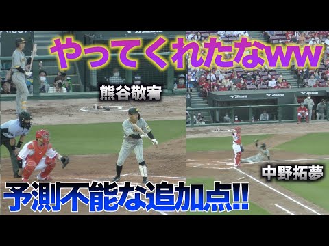 7月19日広島東洋カープVS阪神タイガース戦3回表、熊谷敬宥選手のバスターで無死1・3塁にチャンスを広げ、近本光司選手のピッチャーゴロの隙に中野拓夢選手が生還し貴重な追加点を挙げるシーンです!! #プロ野球Hanshin TigersTAMAMICHITAMAMONホームラン中野拓夢広島東洋カープ熊谷敬宥現地野球映像チャンネル近本光司野球阪神タイガース NPBHUB.COM | The Fanbase of Nippon Baseball & Nippon Professional Baseball