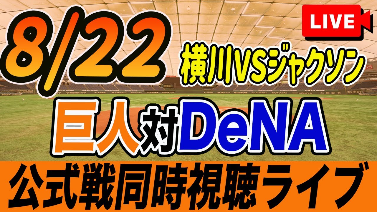 【巨人/同時視聴】8/22巨人対DeNAベイスターズ19回戦を観戦しながら雑談しようライブ配信 予告先発:G横川凱 Deジャクソン 読売ジャイアンツ プロ野球観戦ライブ