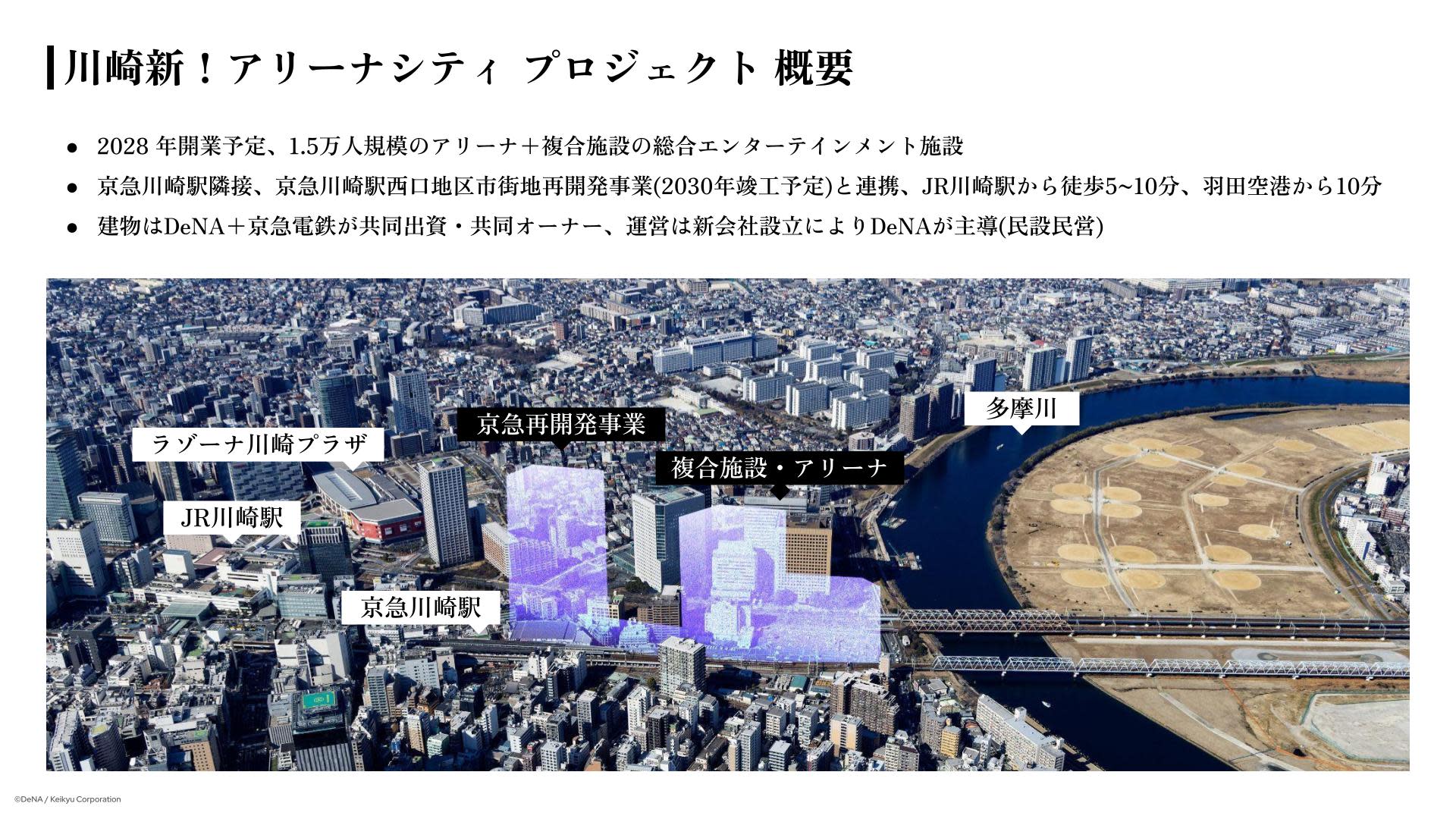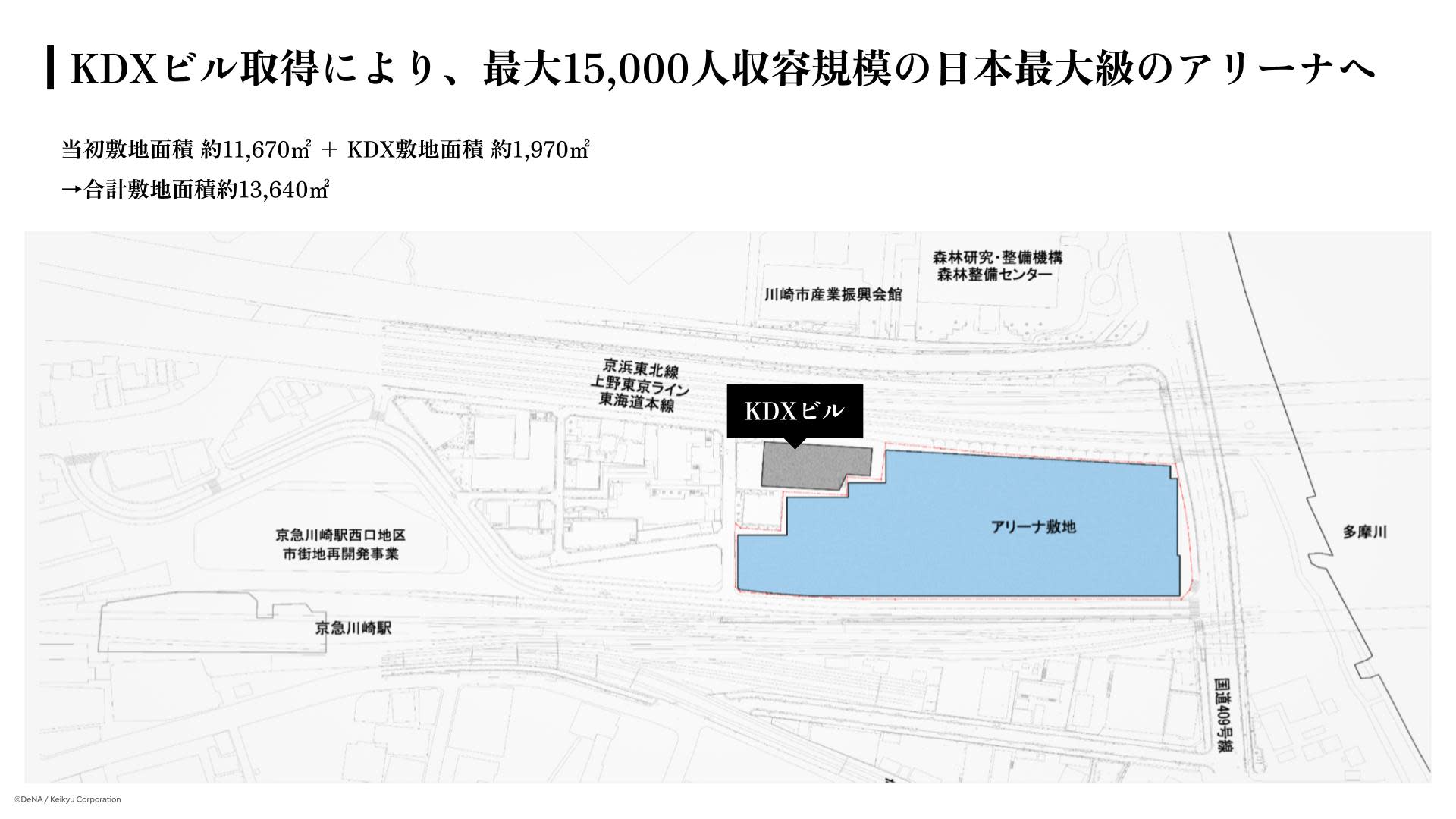 DeNAは2023年3月より、京急川崎駅隣接地にアリーナを含む複合エンターテインメント施設を開業することを目指す「川崎新!アリーナシティ・プロジェクト」を始動し、2023年11月には、建設予定地面積の拡張と設計チームの組成が決まったことを発表しました。