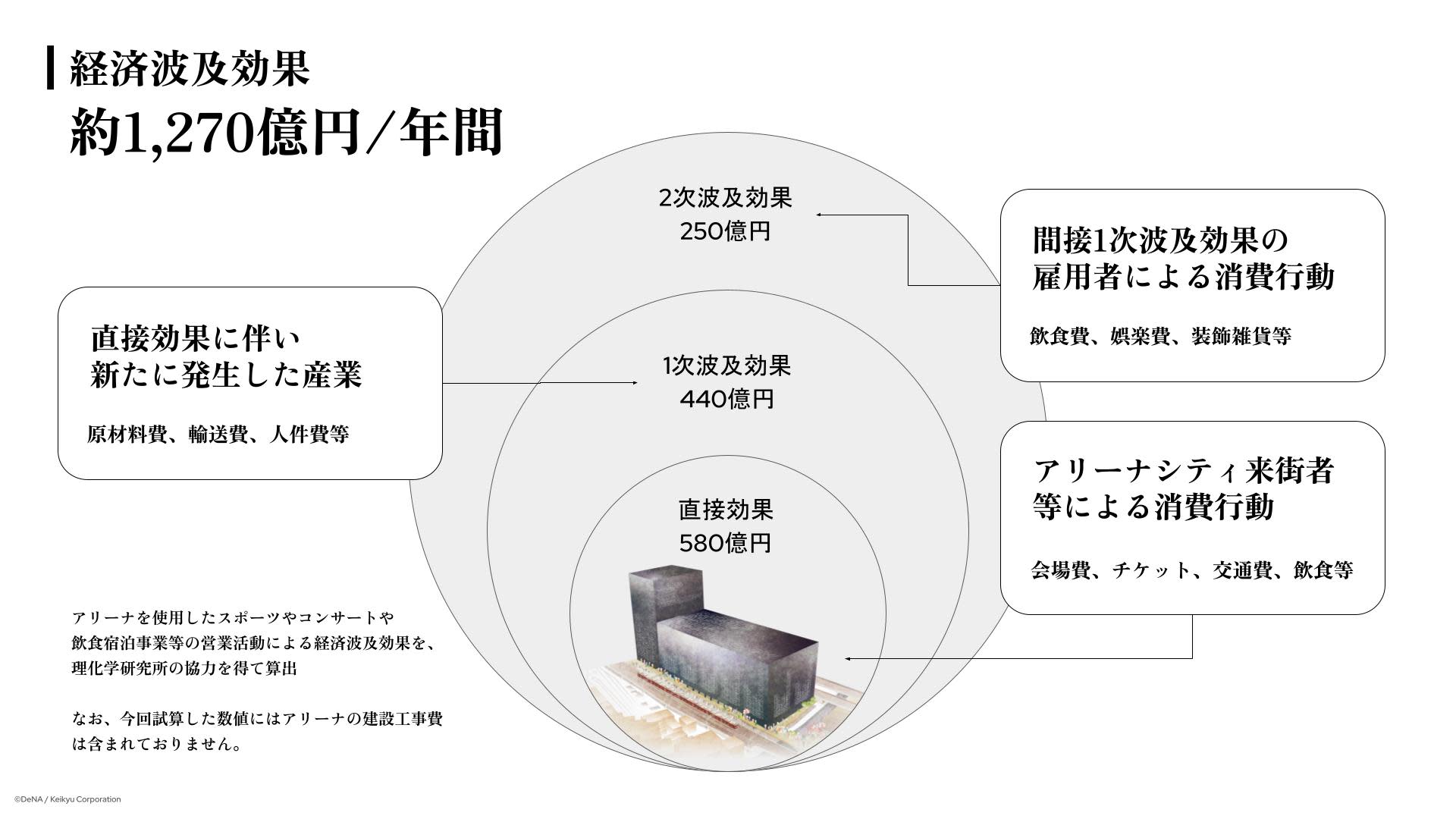 さらに、アリーナシティに関連した仕事に携わる人々の消費行動を指す二次波及効果が250億円を含め、計1,270億円の経済効果が毎年あるという試算です。