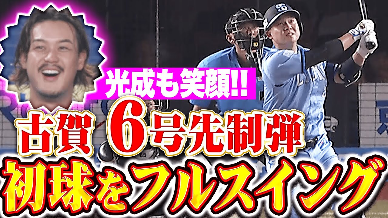 【光成も笑顔!!】古賀悠斗『初球をフルスイングで捉えた!打撃好調を実感する今季6号ソロで先制!』