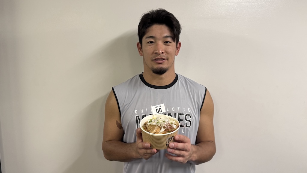 「春季キャンプで汗を流した都城市とのコラボメニューが僕自身初めてのPLAYERS COLLAB MENU 2025となり、とても嬉しく思います。キャンプ地の味をZOZOマリンで堪能できるので、ぜひ食べてください!」