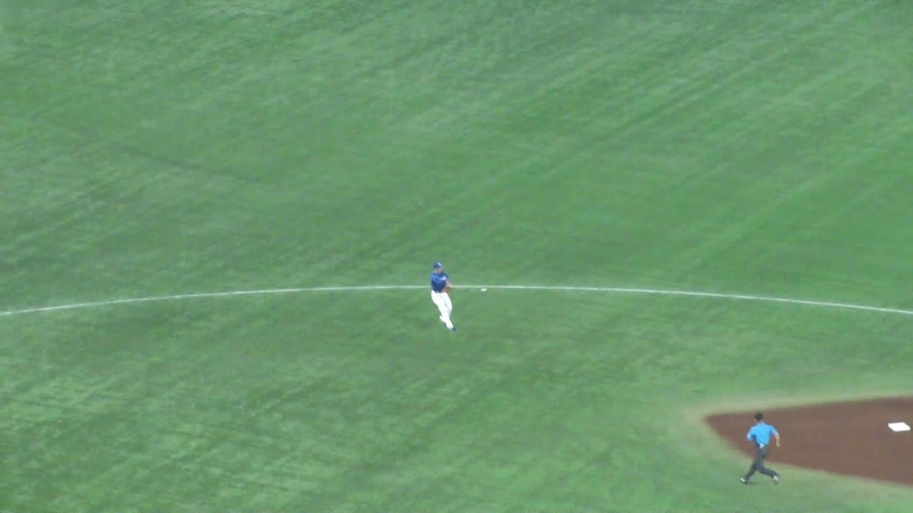 1回裏1アウト1塁で、泉口友汰のゴロをショート山本泰寛が逆シングルでキャッチ後、セカンド田中幹也にジャンピングスローし、643のゲッツー。