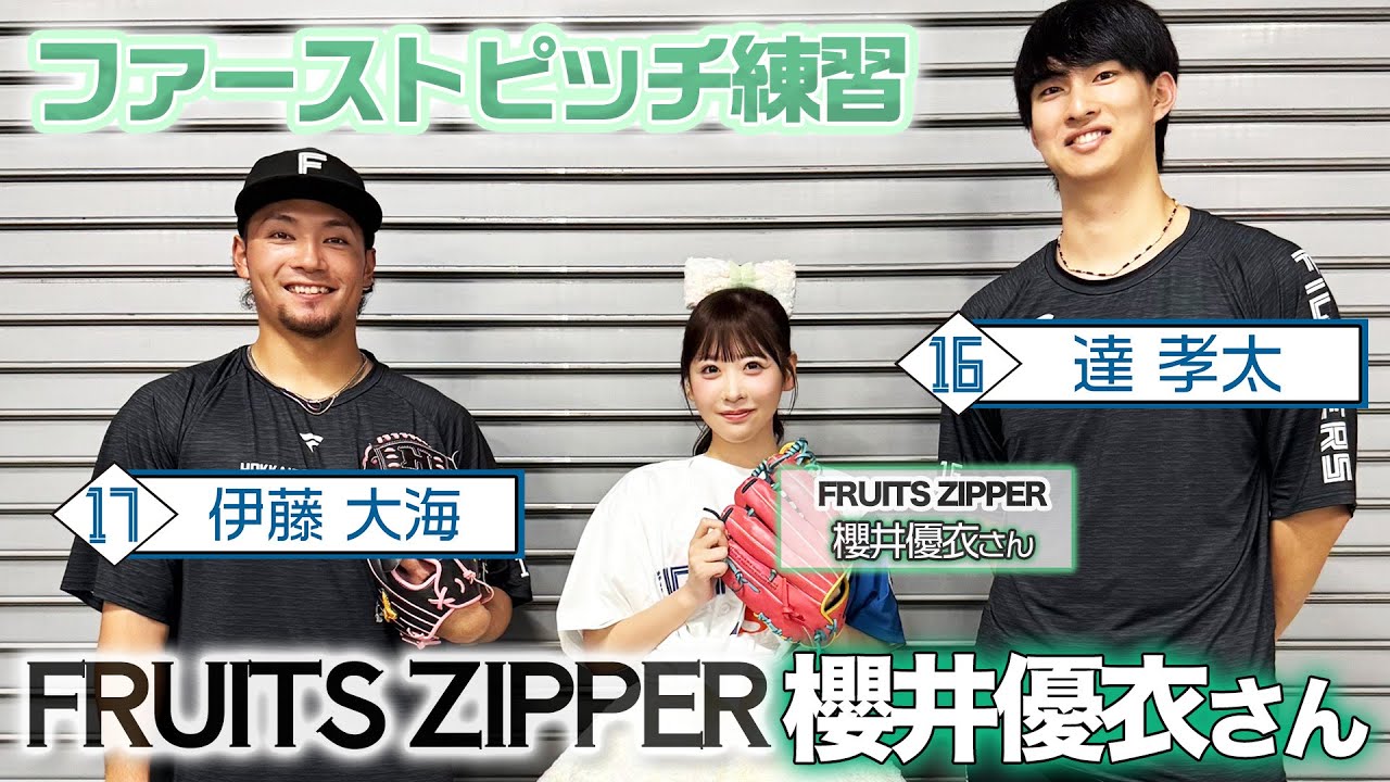 #FRUITSZIPPER #櫻井優衣 さんが#伊藤大海 投手& #達孝太 投手とファーストピッチ練習!