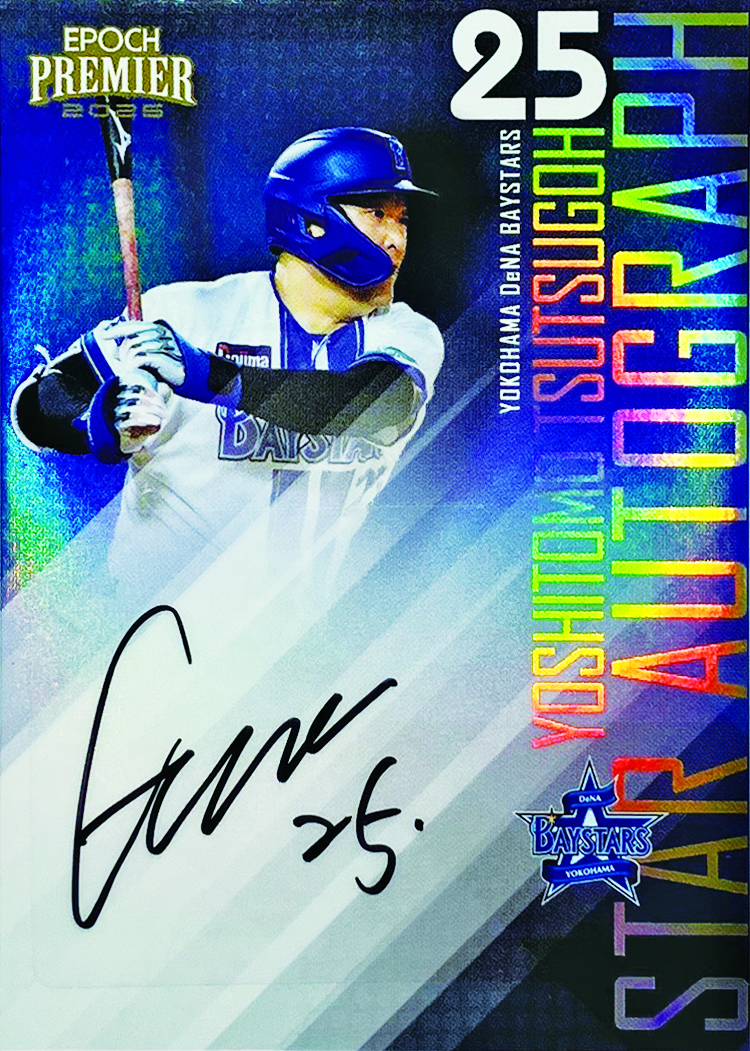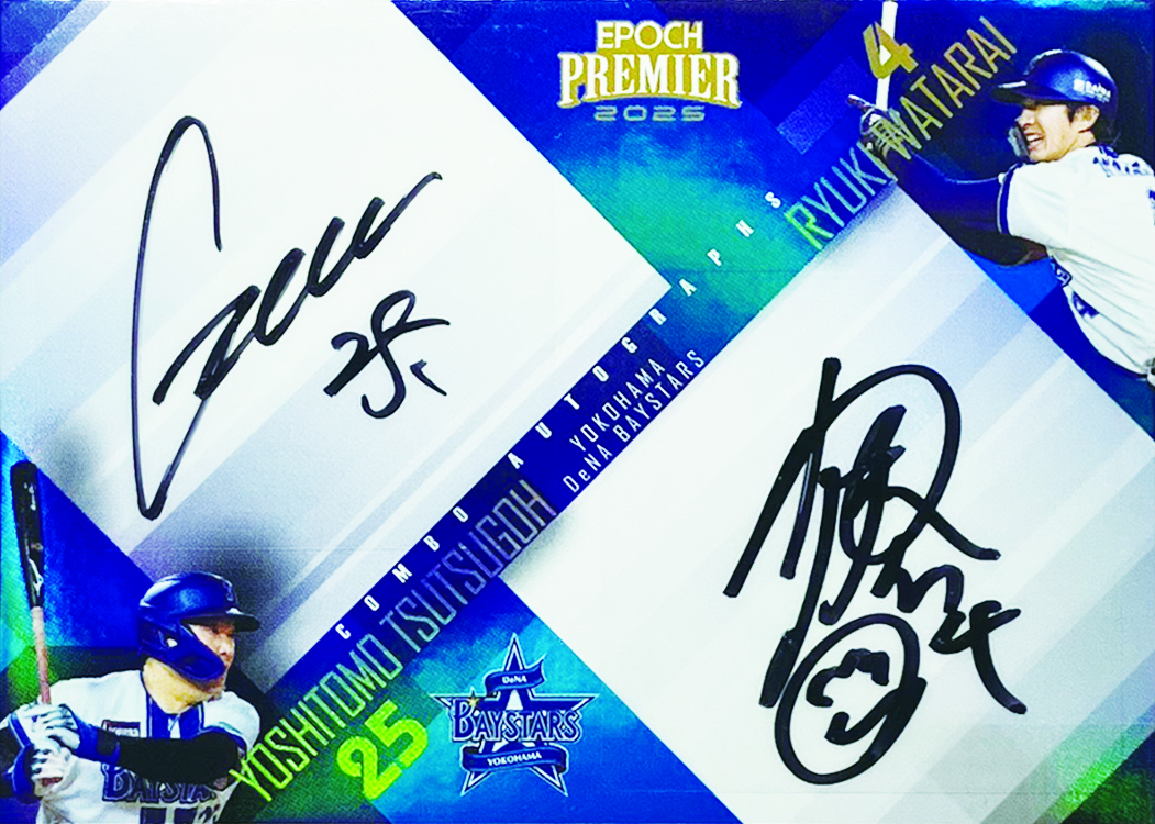 「『PREMIER EDITION』には初登場になる筒香嘉智外野手になります。『STAR AUTOGRAPH』に加え、『COMBO AUTOGRAPHS』では横浜高の後輩でもある度会隆輝外野手とのサイン競演も実現しました。昨季、古巣のベイスターズに復帰してから劇的な本塁打を放ってきた筒香選手ですが、今季も8月13日の東京ヤクルトスワローズ戦で勝負を決定づける自身初の代打アーチとなる、7号3ランを放つなど、切り札として存在感を見せています。これからの試合でも、今回の『PREMIER EDITION』でも、切り札になって欲しいです」