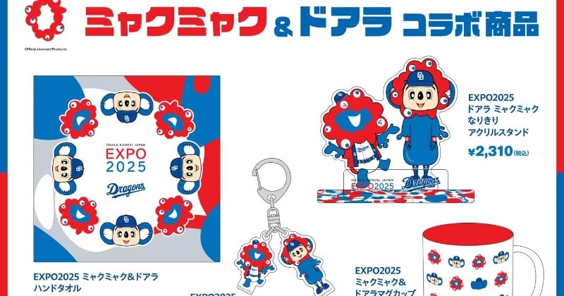 大阪・関西万博「ミャクミャク」と中日ドラゴンズ「ドアラ」のコラボ商品が、期間限定での再販売される。