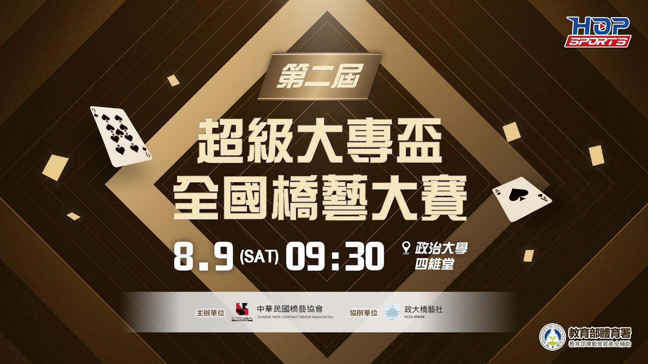 08/09(六) 09:30 LIVE|第二屆超級大專盃全國橋藝大賽|Day 1 上午
