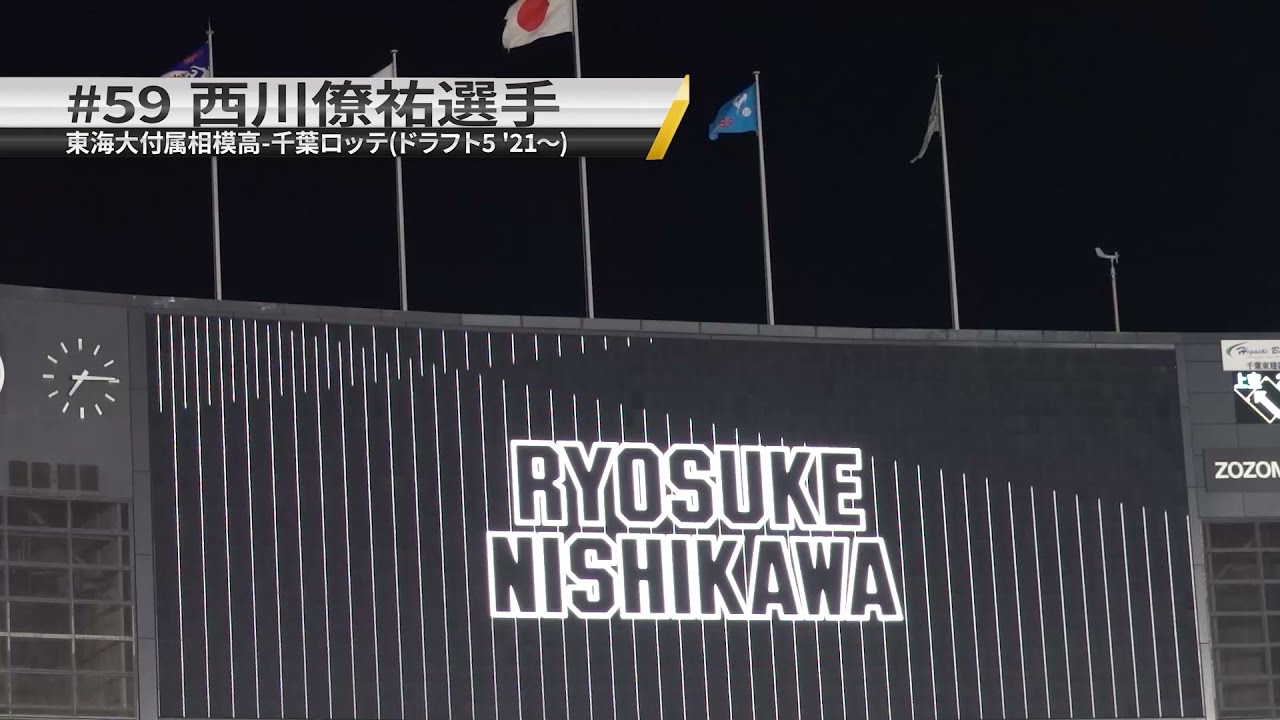 2020年ドラフト5位で入団した#59 西川僚祐選手、2021年育成ドラフト3位で入団した山本大斗選手の、千葉マリンスタジアム打席での登場ムービーです。