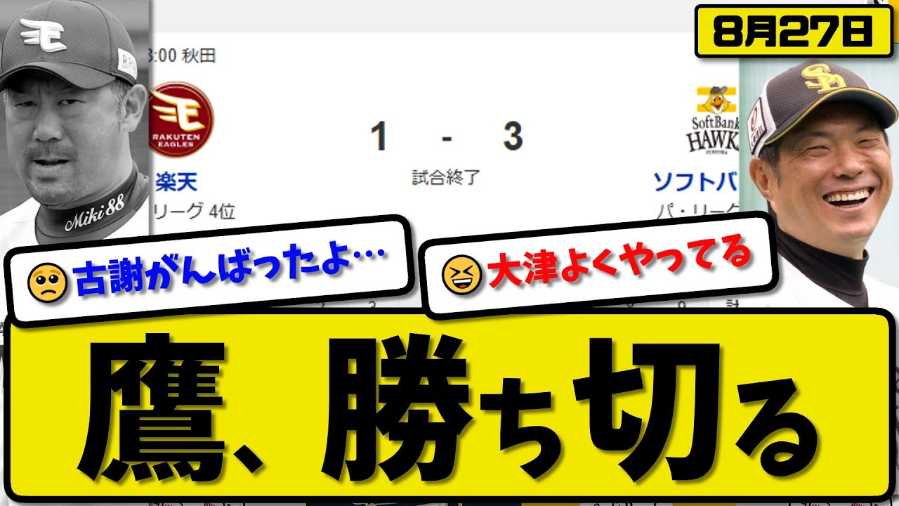【パ1位vs4位】ソフトバンクホークスが楽天イーグルスに3-1で勝利…8月27日勝ち切る…先発大津5回無失点…野村&柳町&海野が活躍【最新・反応集・なんJ・2ch】プロ野球 #福岡ソフトバンクホークス #東北楽天ゴールデンイーグルス #プロ野球 #反応集 Tohoku Rakuten Golden Eagles東北楽天ゴールデンイーグルス NPBHUB.COM | The Fanbase of Nippon Baseball & Nippon Professional Baseball