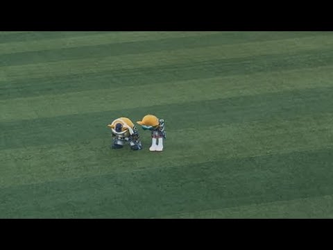 【対戦相手にご挨拶】試合前 レフト側阪神ファンに頭を下げるベイスターズのマスコットキャラクター