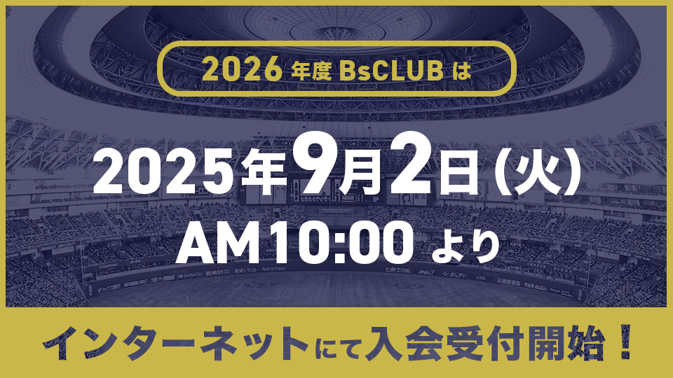 オリックス・バファローズ オフィシャルファンクラブ「BsCLUB」では、2026年度の継続・新規会員募集を9月2日(火)10時より開始いたします!