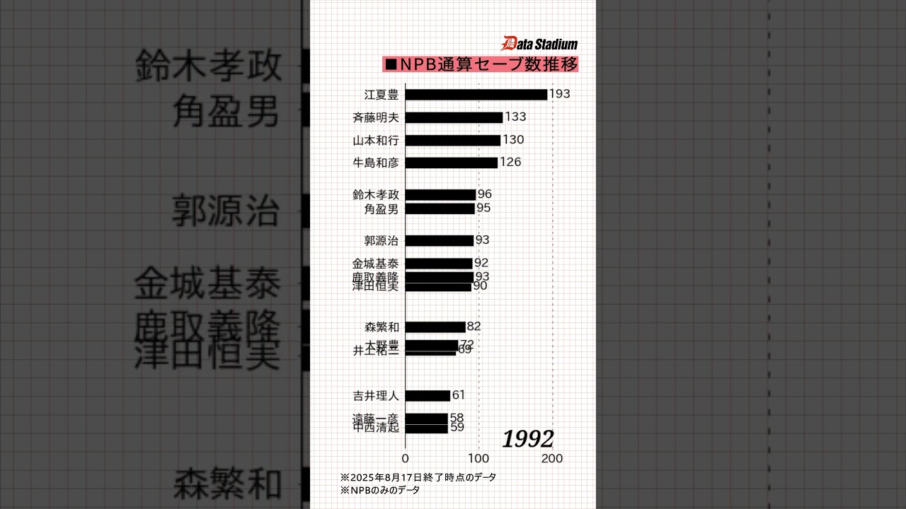 【NPB通算セーブ数推移!】 #shorts #プロ野球 #データスタジアム #ライデルマルティネス