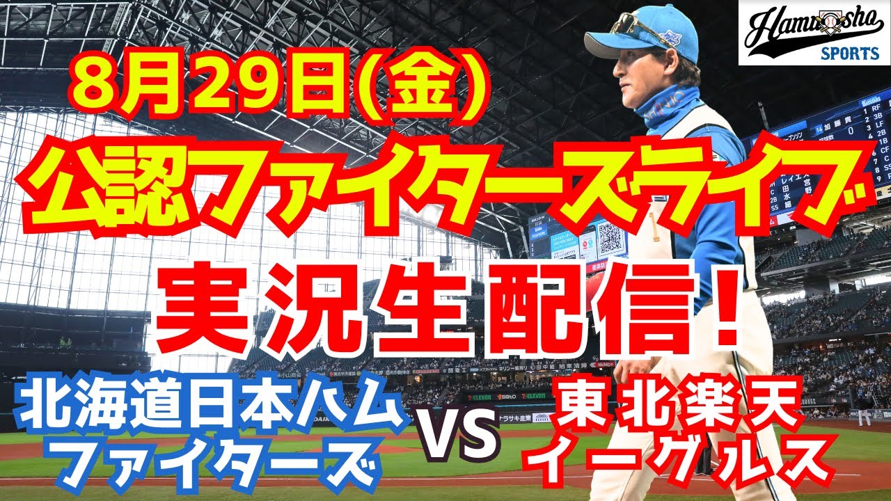 日ハム 日本ハムファイターズ  2025年8月29日 北海道日本ハムファイターズ対東北楽天ゴールデンイーグルス戦を実況生配信でお送りします。