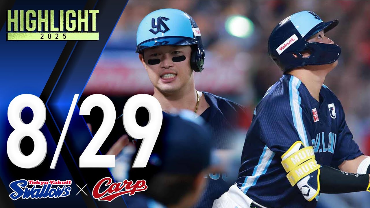 【スワローズ活躍シーン】村上宗隆選手、11号ソロホームラン&濱田太貴選手、弾丸1号ソロ 8月29日 東京ヤクルトスワローズvs広島東洋カープ(神宮球場)