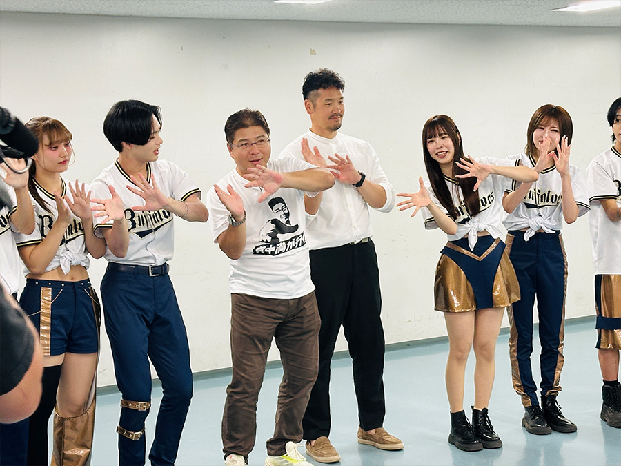 球団応援歌「SKY」のダンスにも挑戦。BsGravityと共に身体でリズムを刻む、チャーミングな二人の姿にご注目ください。