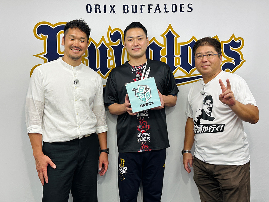 球団公式YouTubeチャンネル「BsTV」や公式エンタメ動画配信サービス「BPB DX」の撮影を務めている仁藤。そこで、真中さんとT-岡田さんに人気企画「カメラに向かってひとこと バファローズ選手ってどんな人?」に挑戦してもらうことに。くじで引いた選手について軽快にトークを展開。時に仁藤からエッジの効いたコメントも飛び出します。いつもとは一味違う「バファローズ選手ってどんな人?」を、ぜひBsTVでチェックしてください。8月31日(日)公開予定です。