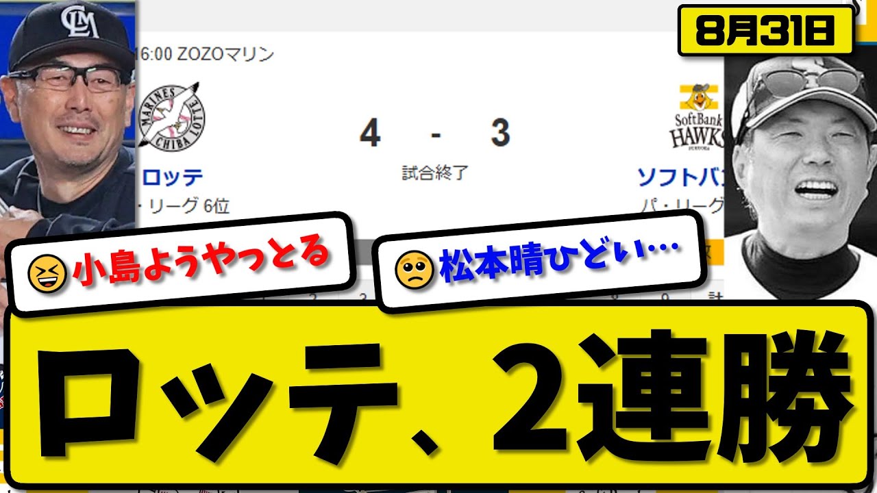 【パ1位vs6位】ロッテマリーンズがソフトバンクホークスに4-3で勝利…8月31日2連勝…先発小島6回2失点…佐藤&友杉が活躍【最新・反応集・なんJ・2ch】プロ野球 #福岡ソフトバンクホークス #千葉ロッテマリーンズ #プロ野球 #反応集 Chiba Lotte Marines千葉ロッテマリーンズ NPBHUB.COM | The Fanbase of Nippon Baseball & Nippon Professional Baseball