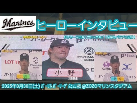 20250830【現地】小野郁、寺地隆成、小川龍成ヒーローインタビュー 千葉ロッテマリーンズ勝利試合後【逆転勝ちの立役者】@ZOZOマリンスタジアム・外野レフト