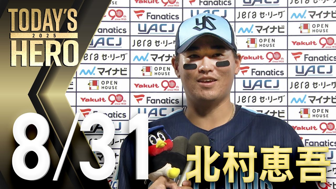 【ヒーローインタビュー】北村恵吾選手、ホームラン含む長打3本で猛打賞 8月31日 東京ヤクルトスワローズvs広島東洋カープ(神宮球場)