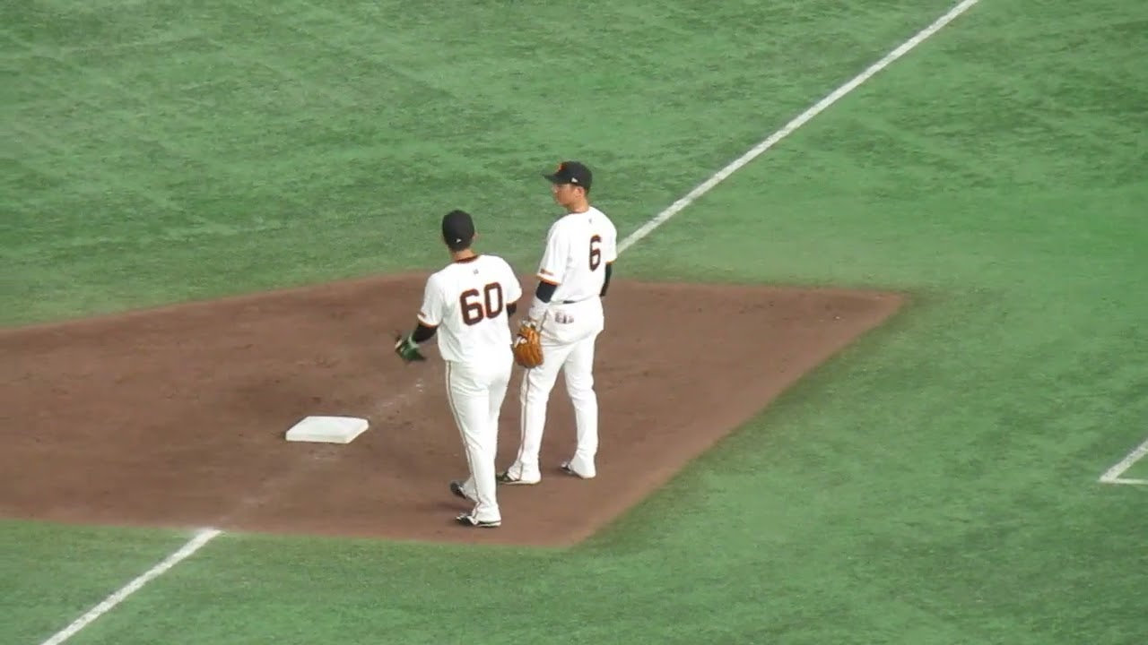 坂本勇人に色々話しかける荒巻悠(読売ジャイアンツ対 ヤクルトスワローズ 2025年8月5日) Yomiuri Giants読売ジャイアンツ NPBHUB.COM | The Fanbase of Nippon Baseball & Nippon Professional Baseball