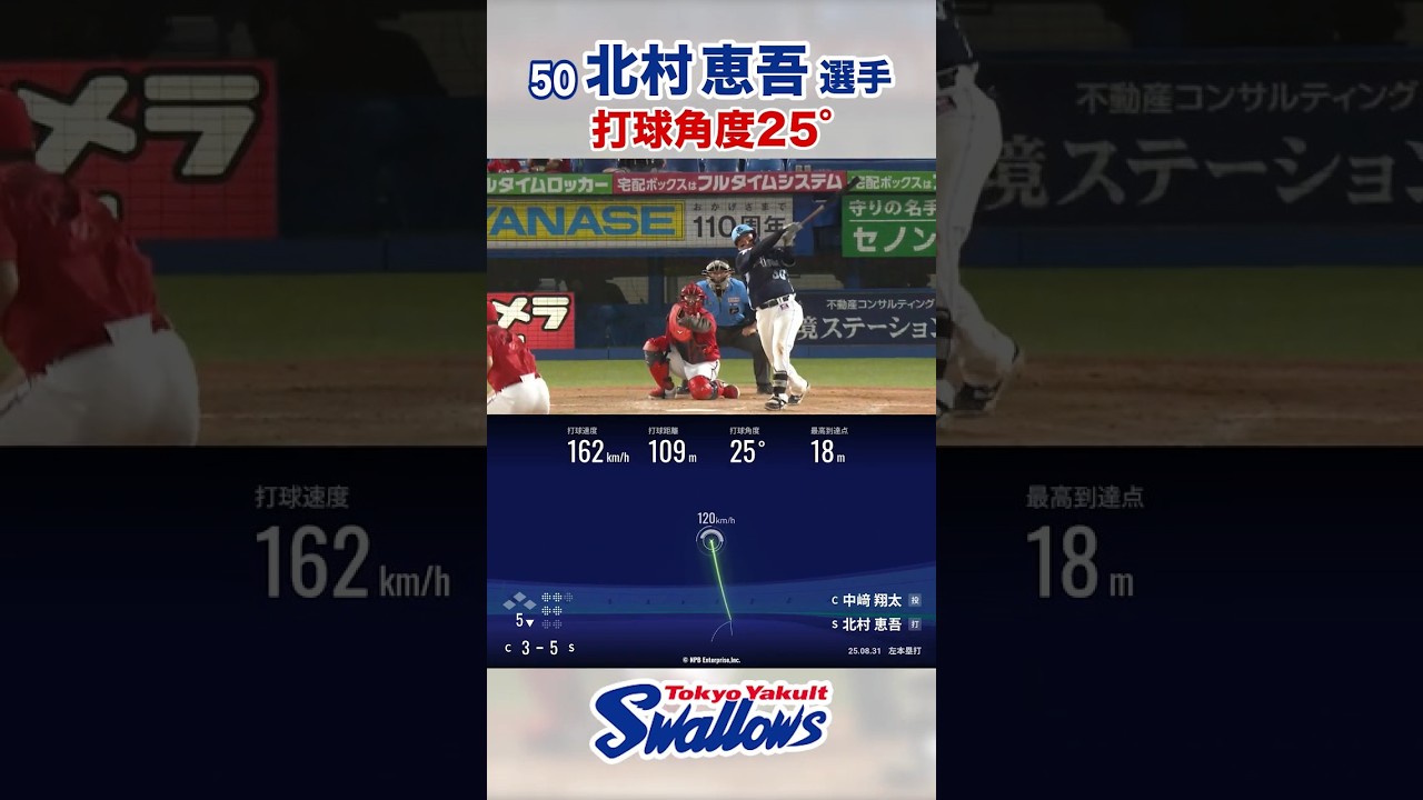北村恵吾選手 打球角度25° #swallows #北村恵吾 #shorts