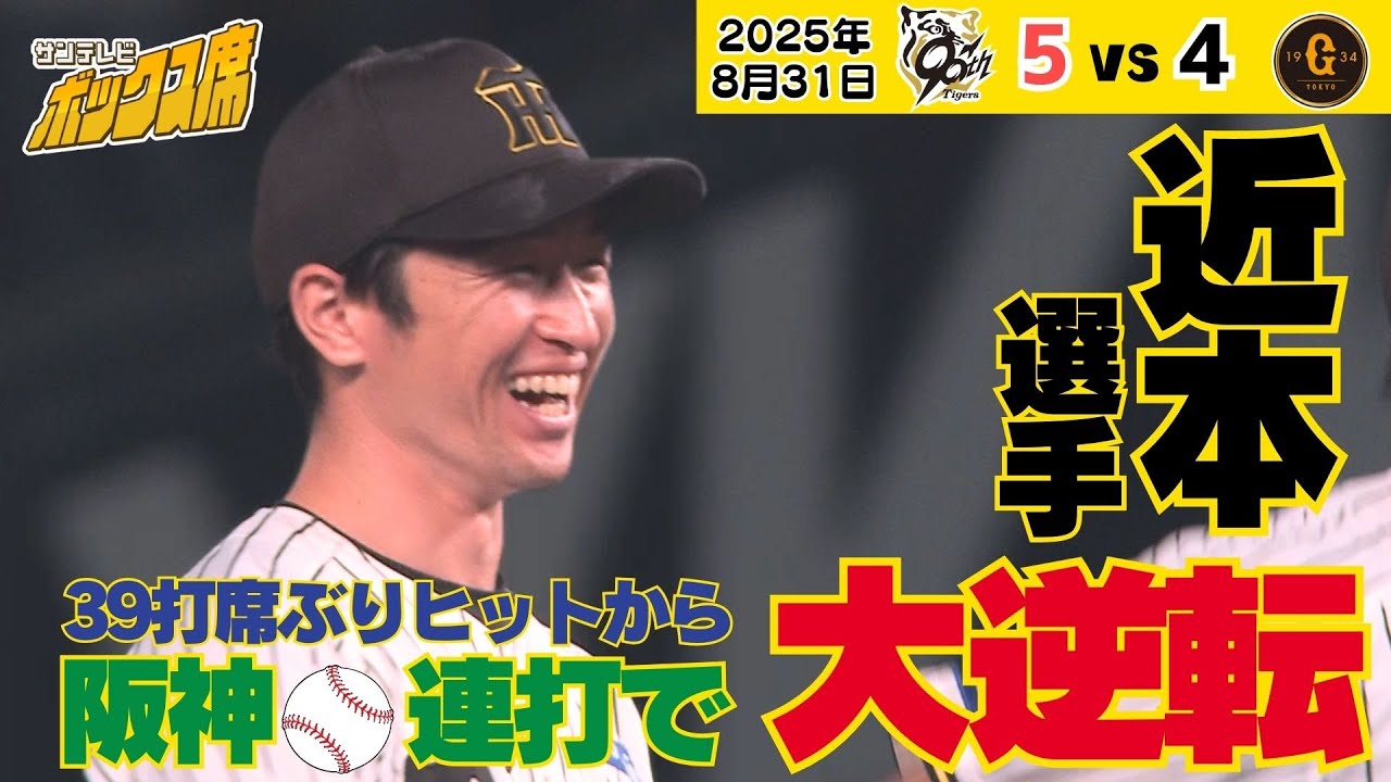 【近本の39打席ぶりヒット!】逆転劇につながる!!(2025年8月31日 阪神ー巨人) #サンテレビボックス席