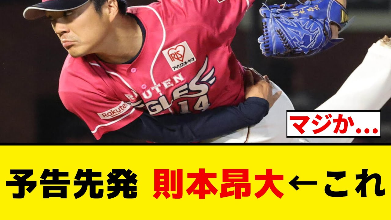 【楽天】24日のオリックス戦で則本昂大の684日ぶりの先発が決まる【プロ野球反応集】