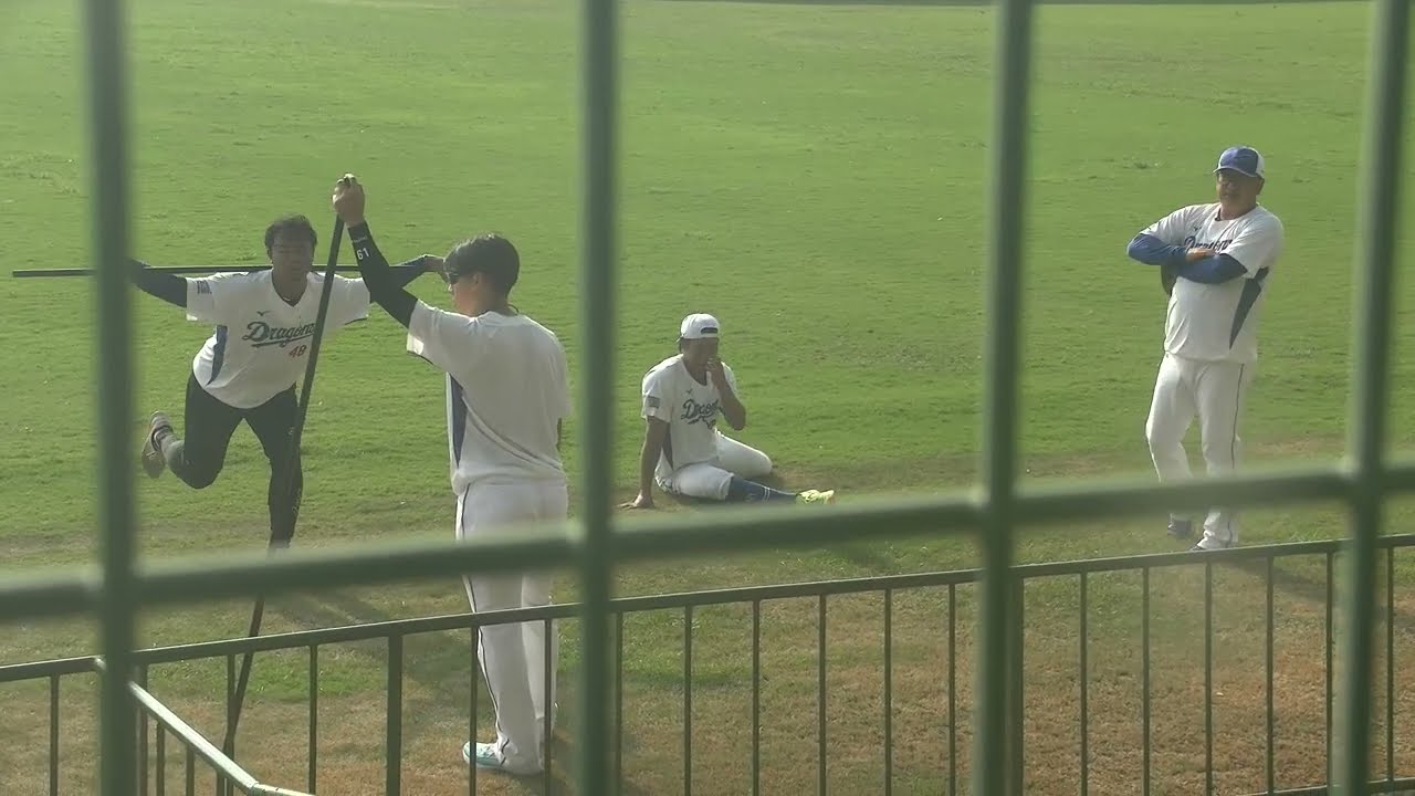 中日ドラゴンズ 棒を両手で挟みステップを取る土生翔太投手、小山伸一郎コーチと話す石川翔投手 どこかを見る高橋幸佑投手 豊橋球場サブグラウンド 2025/8/24 ボールデッド中 Chunichi Dragons中日ドラゴンズ石川翔 野球 NPBHUB.COM | The Fanbase of Nippon Baseball & Nippon Professional Baseball