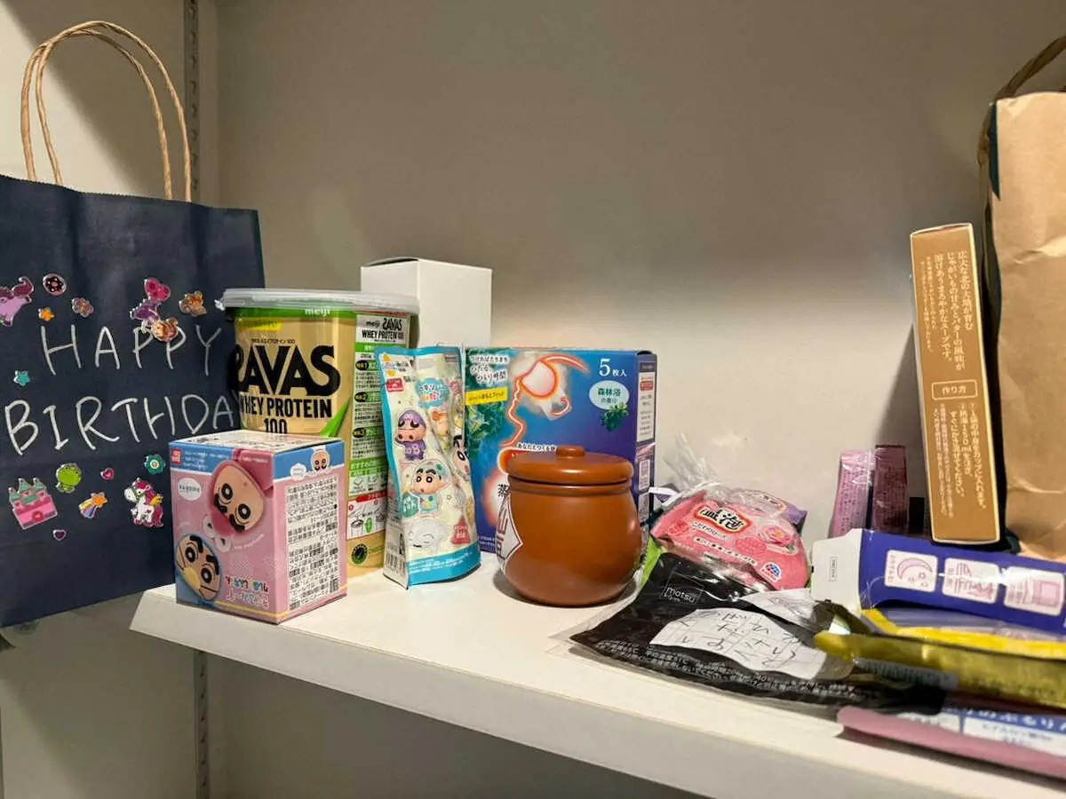 棚の一角に“いただいたものゾーン”を作っている。プレゼントの中でもうれしかったのは手紙で、全て大切に保管している。「今はまだ数が多くないので、内容を覚えています。たくさんたまったらまた読み返します」。<ちなみに>広瀬選手からの伝言「写真にない入浴剤などは、既に使いました。ありがとうございます」。