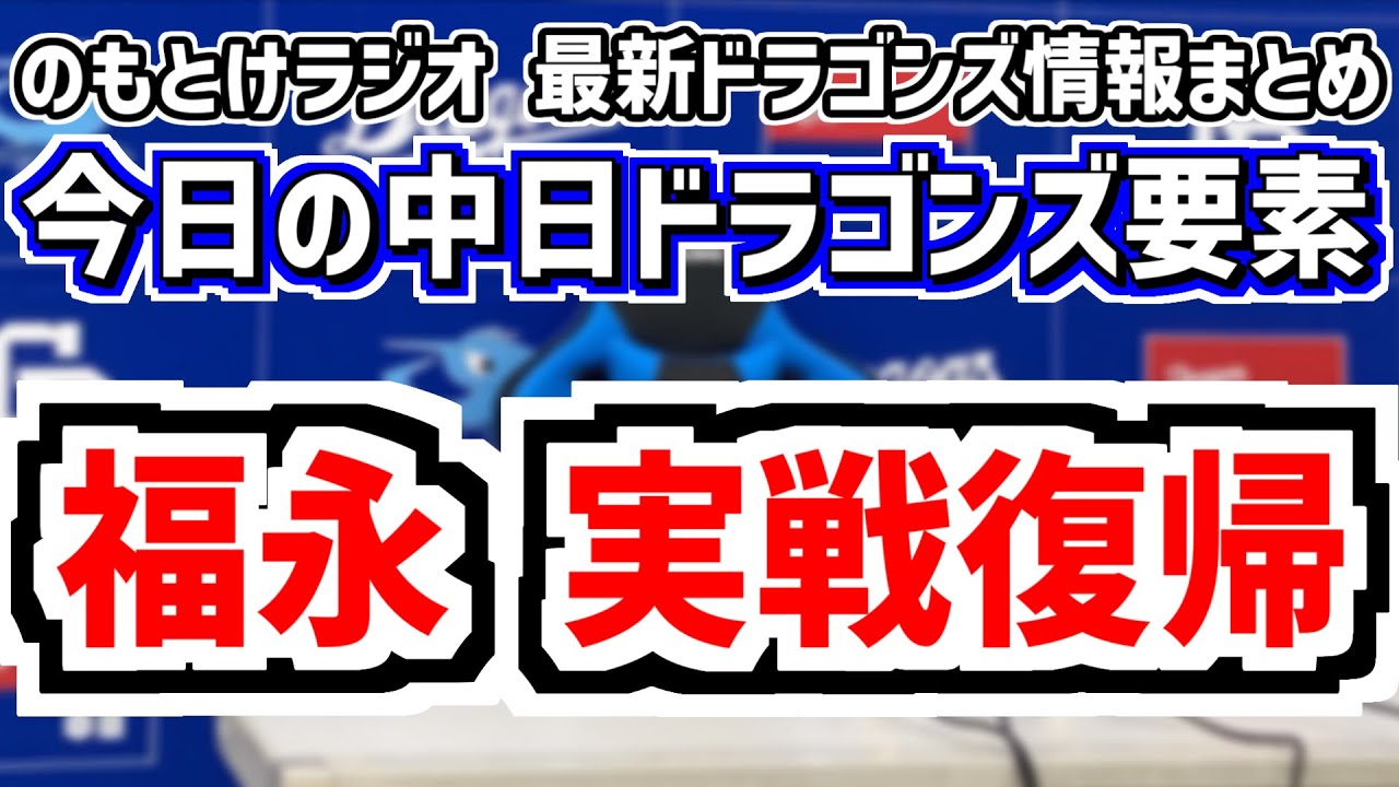 福永裕基が2軍実戦復帰!&中日スタメンがどうなるのかを見守る放送 9月2日(火) 今日の中日ドラゴンズスタメン速報/試合直前雑談 中日vs.阪神 のもとけラジオ番外編 森駿太ホームラン話なども