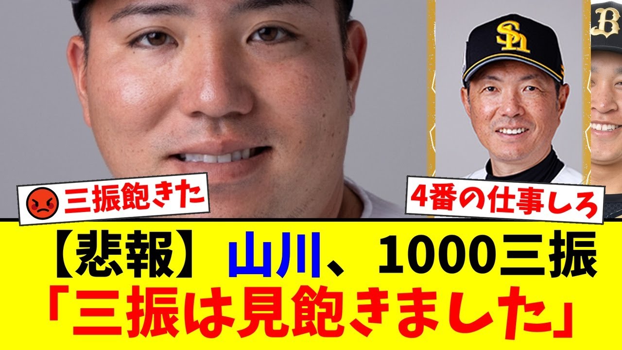 【鷹党から厳しい声】山川穂高、不名誉な1000三振達成にファンから「4番失格」の声が噴出。得点圏での不振と小久保監督の采配にも批判殺到【プロ野球ファンの反応】