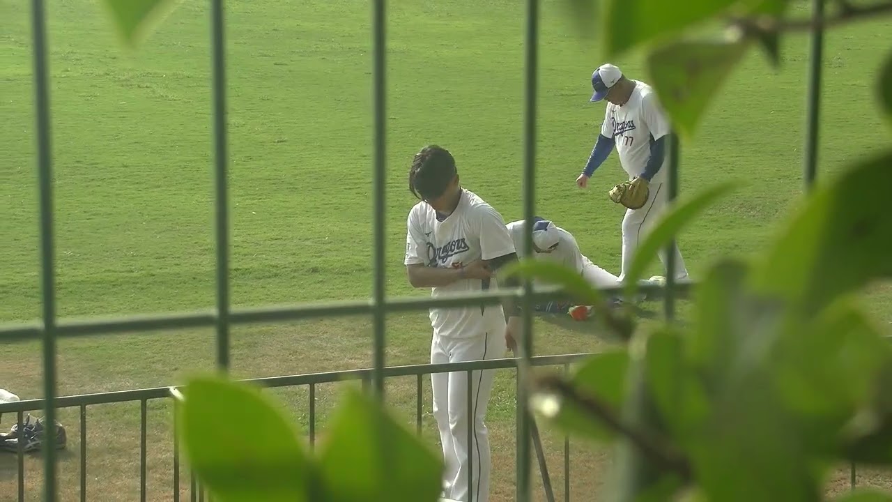 中日ドラゴンズ 棒を使って体をほぐす?高橋幸佑投手、小山伸一郎コーチにストレッチしてもらう石川翔投手 豊橋球場サブグラウンド 2025/8/24 ボールデッド中 Chunichi Dragons中日ドラゴンズ石川翔 野球 NPBHUB.COM | The Fanbase of Nippon Baseball & Nippon Professional Baseball
