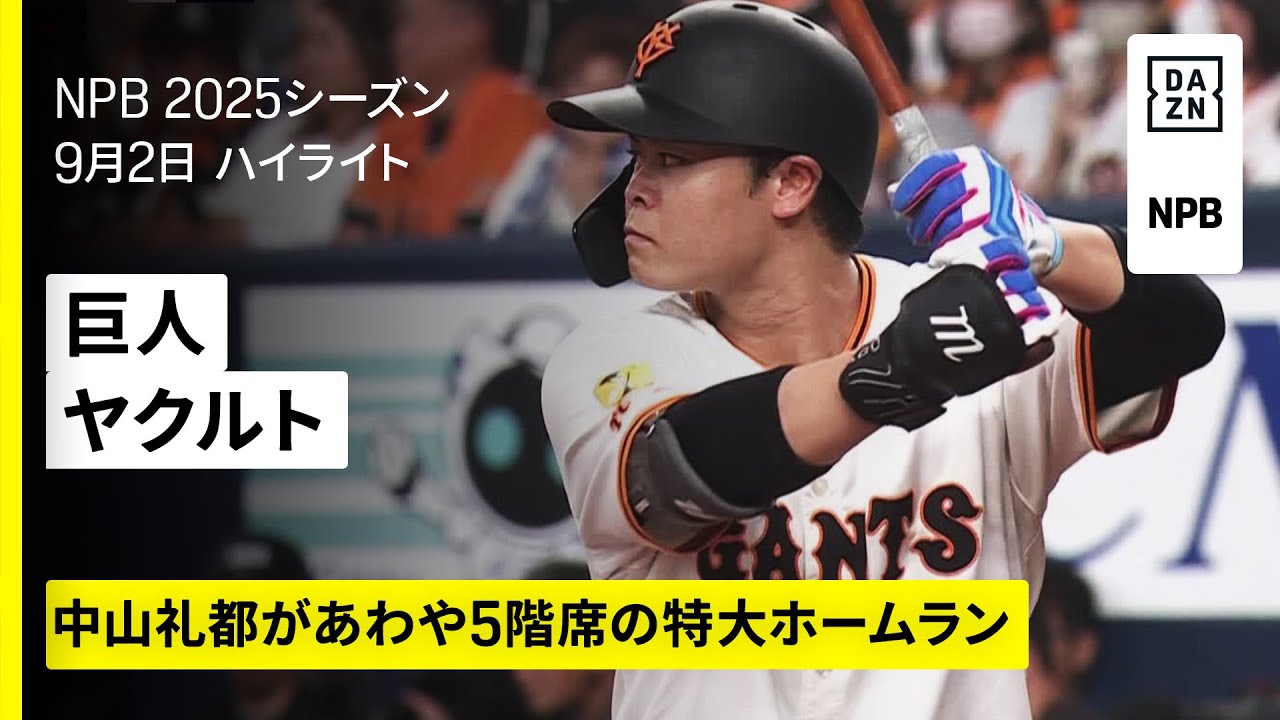 【読売ジャイアンツ×東京ヤクルトスワローズ|中山礼都が特大ホームラン、泉口友汰はタイムリー|ハイライト】2025年9月2日 プロ野球