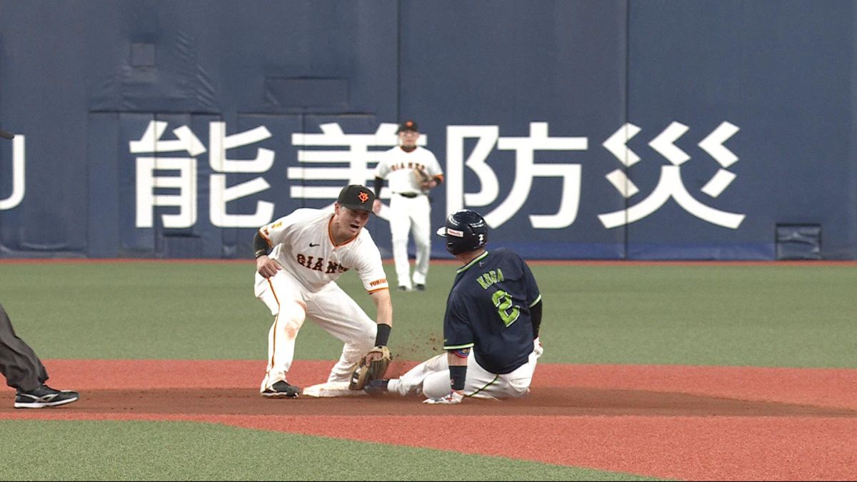 巨人は4回、見事な中継プレーでツーベースを阻止。先発の森田駿哉投手を救いました。