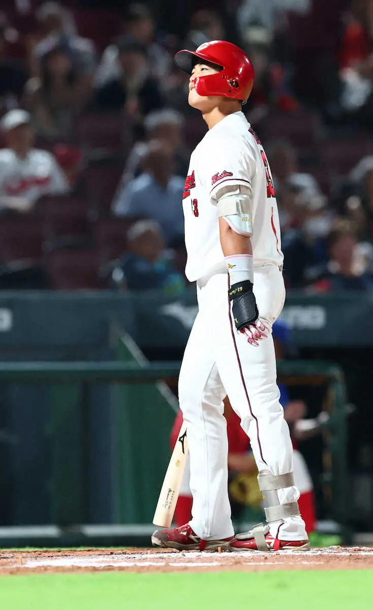 6点を追う7回先頭で昨年10月5日以来の打席に立ち、ケイの内角カットボールにバットが出ず見逃し三振。試合後は荷物をまとめ「ファームへ行ってきます」と話し、帰途に就いた。ウエスタン・リーグでは出場73試合で打率・202、2本塁打、18打点。新井監督は「枠があったので経験させたいと思って上げました」と説明。チーム事情で今回は1日だけの昇格になりそうだ。