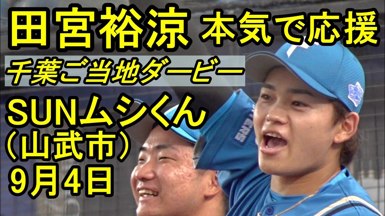 日本ハム田宮裕涼(山武市)千葉ご当地キャラダービーで地元代表SUNムシくんを本気で応援2025.9.4 2025年9月4日ZOZOマリンスタジアム 千葉ロッテマリーンズ対北海道日本ハムファイターズ 千葉県山武市出身、田宮裕涼 ALL FOR CHIBAイベント 千葉ご当地キャラダービで地元代表「SUNムシくん」を本気で応援 0:00~田宮裕涼 0:53~千葉ご当地キャラダービー、地元「SUNムシくん」を本気で応援 2:05~山武市のブースでは「かきいちごおり」700円の販売がありました Hokkaido Nippon-Ham Fighters北海道日本ハムファイターズ田宮裕涼 NPBHUB.COM | The Fanbase of Nippon Baseball & Nippon Professional Baseball