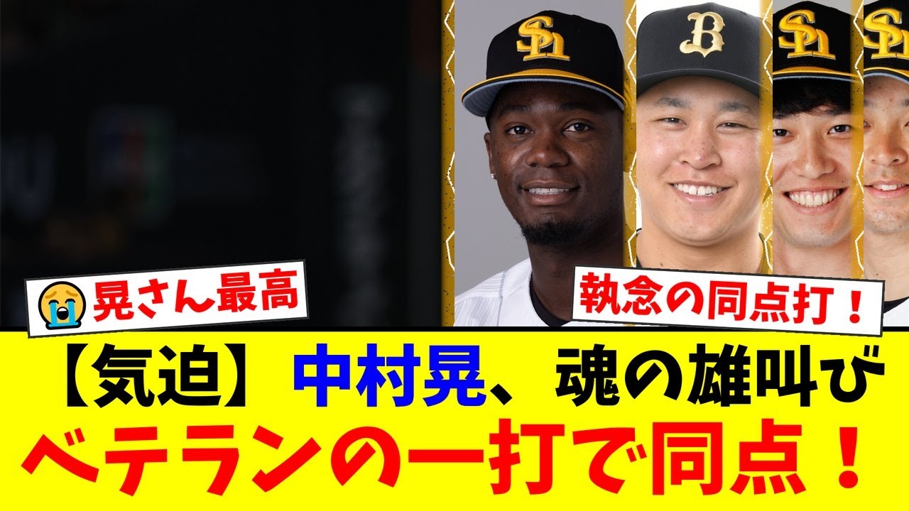 【神】代打・中村晃、気迫の雄叫び同点タイムリー!重苦しい空気を一変させたベテランの一打に鷹ファン大興奮!【プロ野球ファンの反応】
