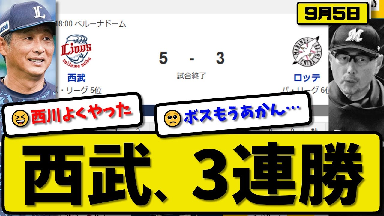 【パ5位vs6位】西武ライオンズがロッテマリーンズに5-3で勝利…9月5日3連勝…先発髙橋5回3失点…古賀&西川&外崎&平沼が活躍【最新・反応集・なんJ・2ch】プロ野球 #千葉ロッテマリーンズ #西武ライオンズ #プロ野球 #反応集 Saitama Seibu Lions埼玉西武ライオンズ NPBHUB.COM | The Fanbase of Nippon Baseball & Nippon Professional Baseball