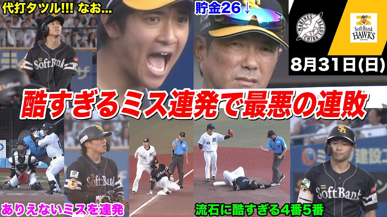 【地獄】今日のタツル、いい加減にしてくれ!聖域ベテラン偏重、酷すぎるミス連発。最悪の連敗にイライラで気が狂いそうな鷹ファン
