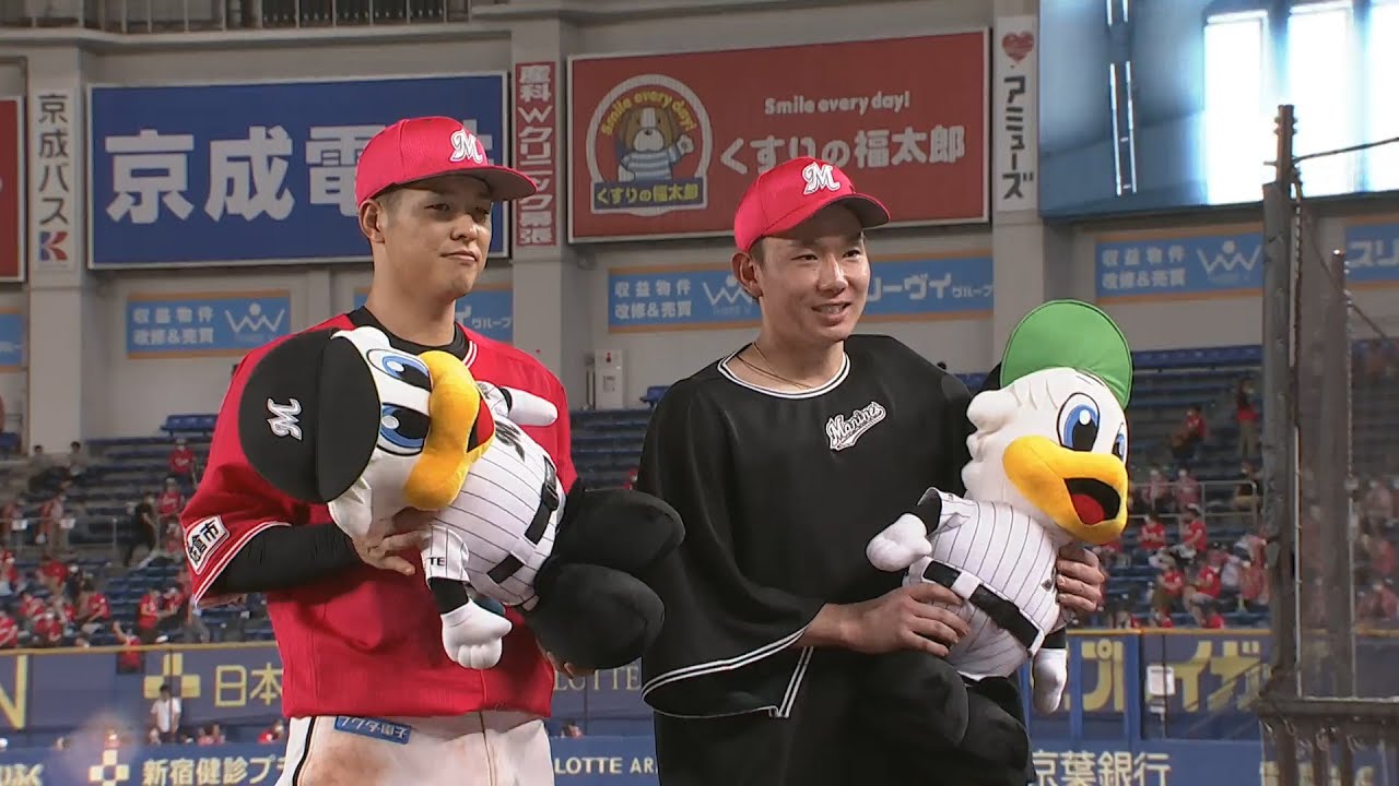 2020/9/11 マリーンズ・中村奨吾選手、中村稔弥投手のヒーローインタビュー動画。