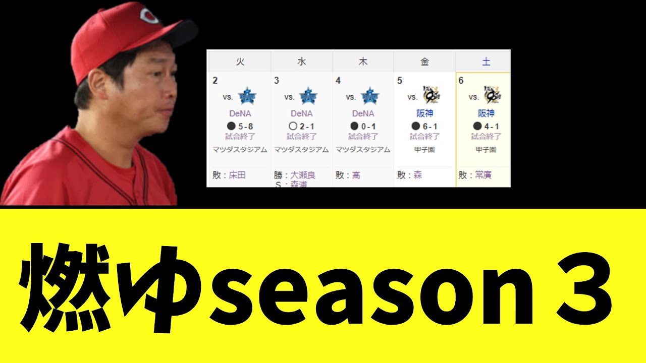 【悲報】広島東洋カープ 今季2度燃ゆの危機
