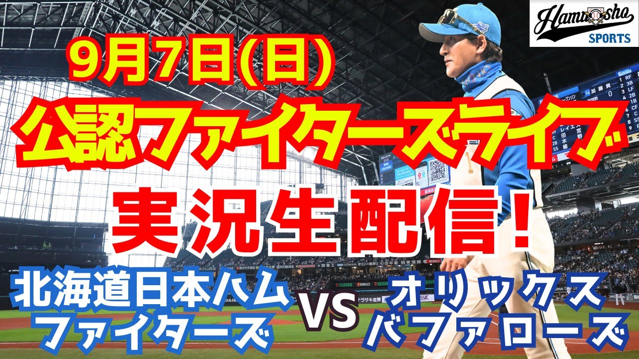 日ハム 日本ハムファイターズ 2025年9月7日 北海道日本ハムファイターズ対オリックスバファローズ戦を実況生配信でお送りします。