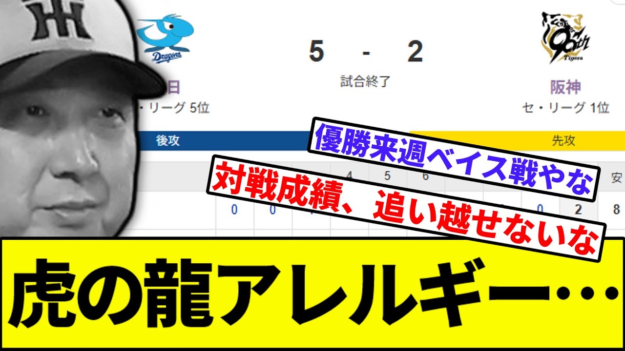 【絶妙に勝ち越せない謎…】虎の龍アレルギー…【なんJ反応】【なんG反応】【プロ野球反応集】【2chスレ】【5chスレ】【巨人】【阪神】【中日】【横浜ベイスターズ】【ヤクルト】【カープ】