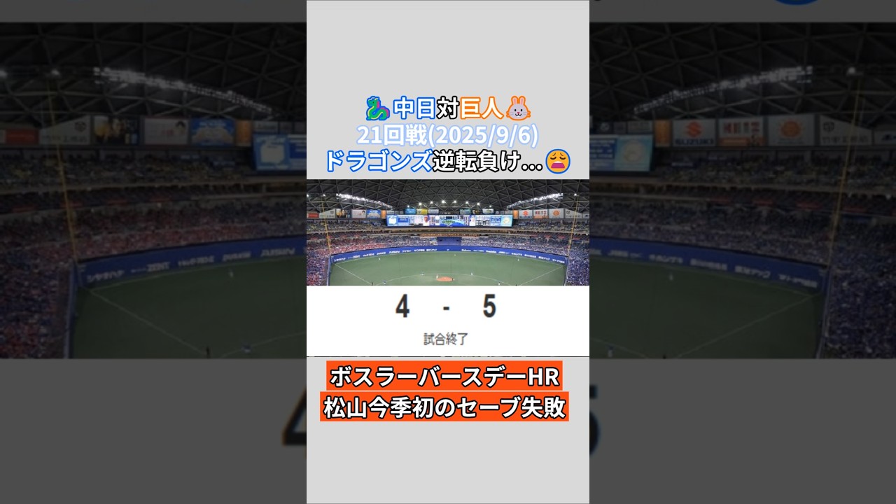2025年9月6日 中日ドラゴンズ 対 読売ジャイアンツ 試合結果 中日ファン目線で振り返り!#shorts #野球 #プロ野球 #中日ドラゴンズ