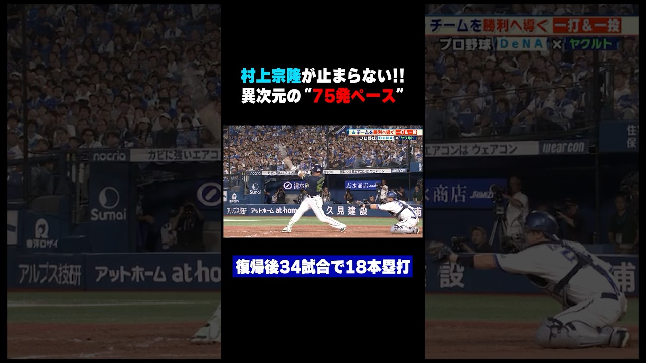 #ヤクルト #村上宗隆 3試合連続18号!復帰後34試合で18本塁打の異次元ペース