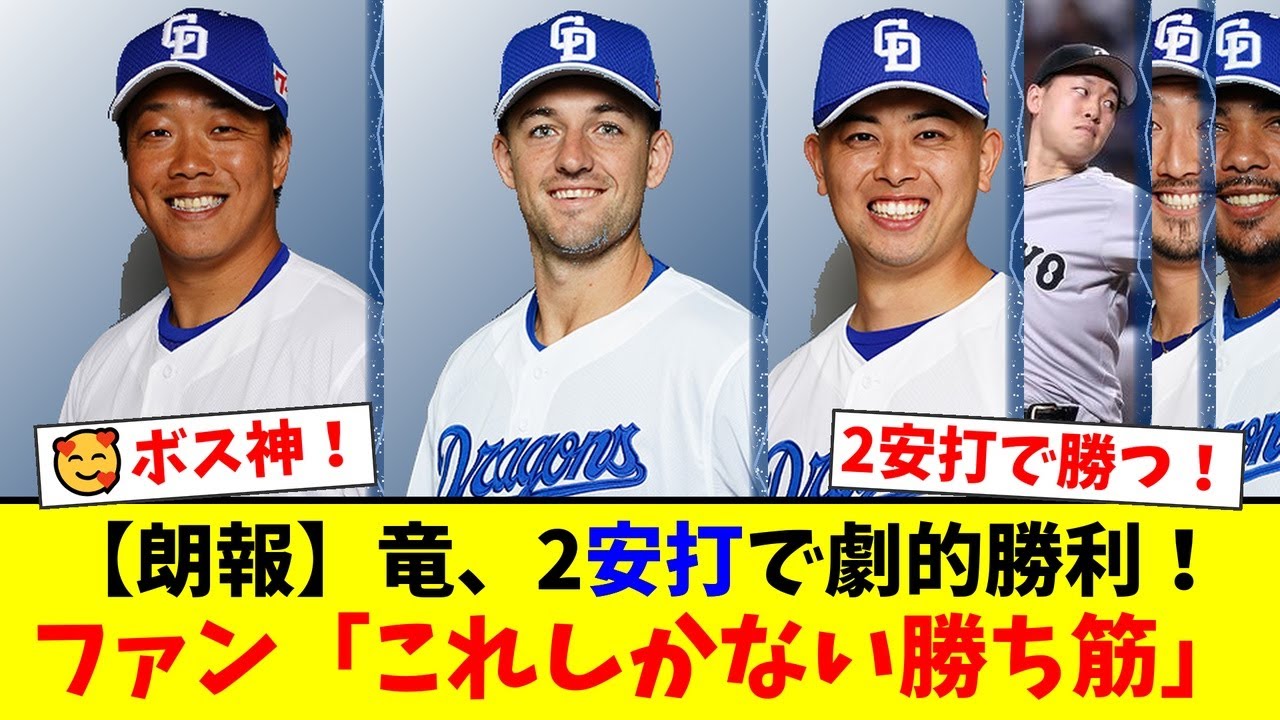 【中日】わずか2安打での劇的勝利にファンが熱狂!ボスラーの決勝弾、柳の粘投、松山の完璧リリーフで巨人を完封!この勝ち方はデカすぎる!【プロ野球ファンの反応】